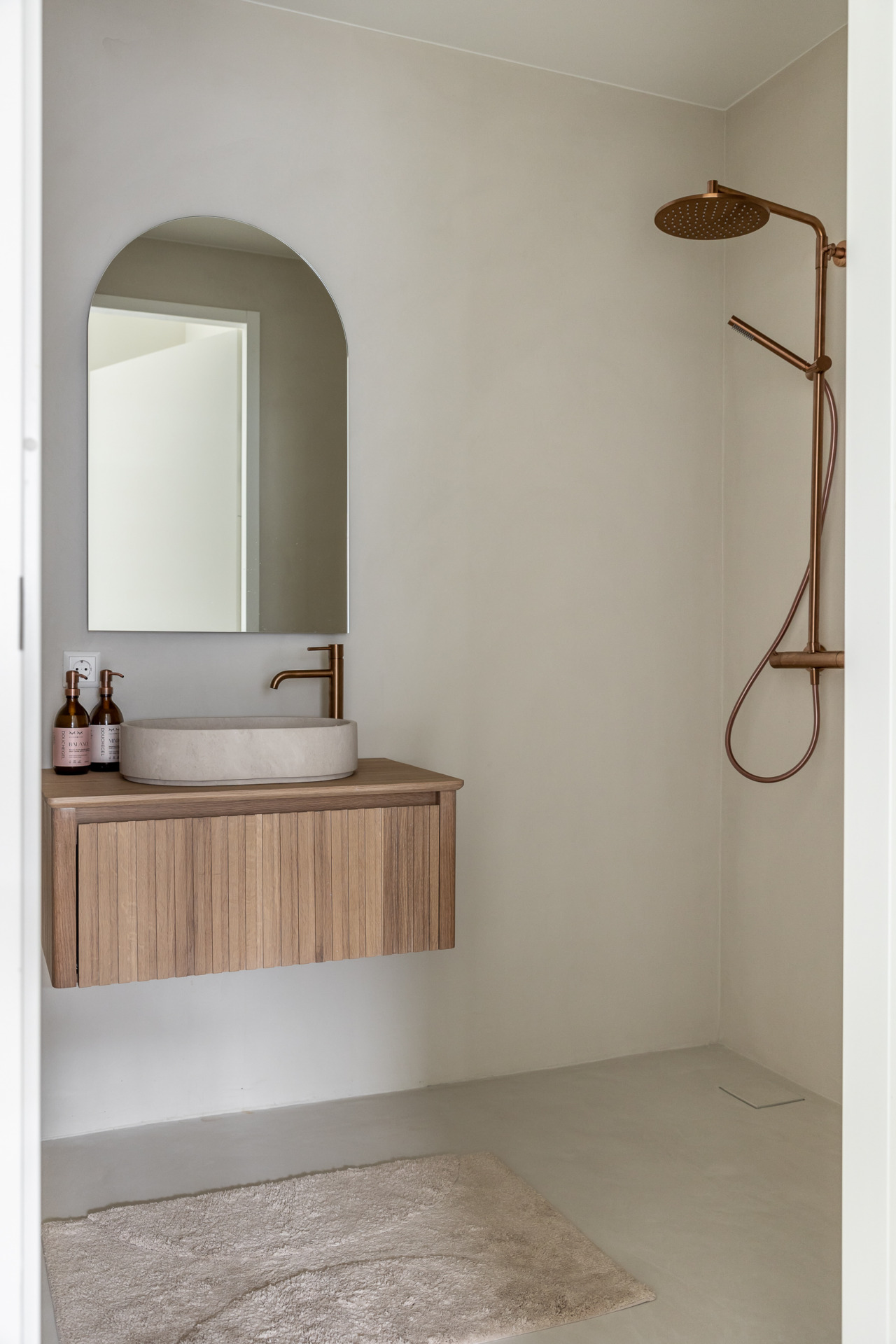 “Ga het materiaal echt ervaren. Een gietvloer lijkt op foto’s misschien strak, maar als je hem in het echt ziet en voelt, merk je hoe warm en verfijnd hij is. Let ook op de kleur in natuurlijk licht, want dat verandert veel in de beleving van een ruimte. En kies voor kwaliteit, een vloer is een investering die je elke dag ziet en voelt.”